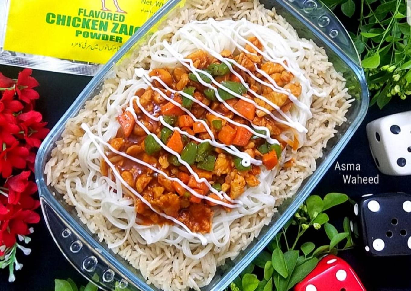 This is a yummy and very nutritious recipe .. having the portions from all major food groups ...rice ,veggies , chicken and noodles