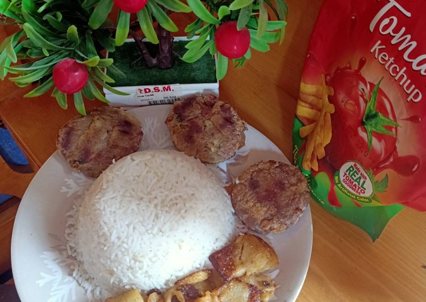 Shami kabab with plain rice